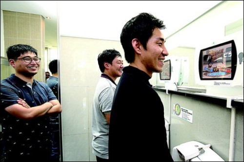 코오롱이 운영하는 영동고속도로 하행선 덕평휴게소는 최근 남자 화장실 소변기에 비디오게임 모니터를 설치했다.