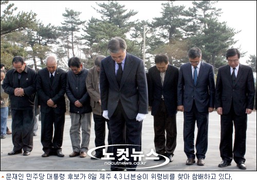 8일 제주를 찾은 문 후보는 4.3 너븐숭이 기념관에서 기자들과 만나 "제주 신공항 건설이나 공항 확장이 우선이고 제주-목포 해저 터널 건설은 공항 관련 사업이 확정되고 난 이후에나 검토될 과제"라고 강조했다.