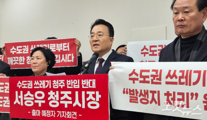 서승우, 수도권 쓰레기 반입 저지 '4대 정책 과제' 제시 충북 청주시장 선거에 출마하는 국민의힘 소속의 서승우 전 충북도 행정부지사가 수도권 생활폐기물 반입 저지를 위한 4대 정책 과제를 내놨다. 서 전 부지사는 13일 청주시청 브리핑룸에서 기자회견을 열어 "지금 청주와 충북은 수도권 쓰레기 부담을 떠안는 뒷마당으로 전락하고 있다"며 "수도권 쓰레기 문제로 청주의 미래를 포기할 수 없다"고 주장했다. 2026.01.13 15:44