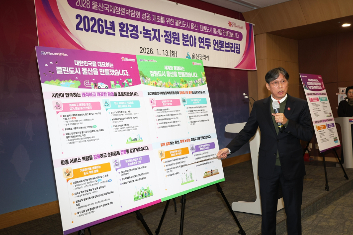 울산시 '세계와 동행하는 정원도시' 조성 총력…4대 전략 추진 울산시는 올해 '세계와 동행하는 정원도시' 조성에 총력을 기울인다고 13일 밝혔다. 시는 이를 위해 정원도시 품격 향상, 도시 생활권 내 여가 기반 구축, 정원문화를 선도하는 태화강 국가정원 조성, 시민과 함께하는 생태정원도시 조성 등 4대 전략을 중심으로 총 17개 과제에 정책 역량을 집중한다. 2026.01.13 15:43