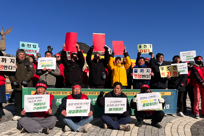 시민단체 "용인 반도체 산단·송전선로 전면 재검토해야" '용인 반도체 국가산단 재검토와 초고압 송전탑 건설 반대 전국행동'(이하 전국행동)이 정부에 용인 반도체 클러스터 조성 계획의 전면 중단과 재검토를 촉구했다. 전국행동은 20일 청와대 앞에서 기자회견을 열고 "기후위기 시대에 역행하는 수도권 집중 전력 정책이 지역의 희생을 강요하고 있다"며 산단 및 송전선로 계획의 전면적인 수정을 요구했다. 2026.01.20 17:27