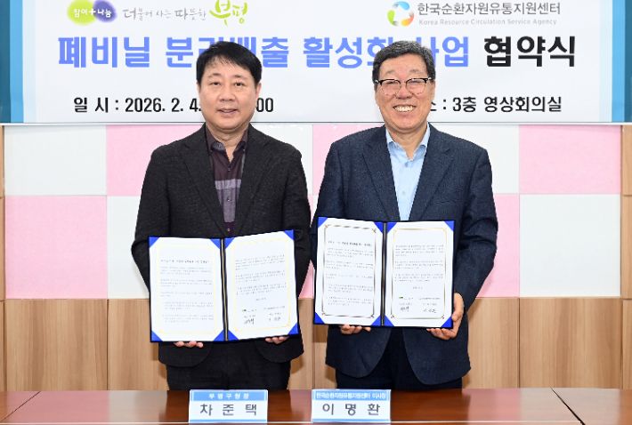 KORA, 인천 부평구와 '폐비닐 회수·재활용 활성화' 업무협약 한국순환자원유통지원센터(이하 KORA)는 2월 4일에 인천광역시 부평구(이하 부평구)와 '폐비닐 회수·재활용 활성화를 위한 업무협약'을 체결했다. 이번 협약으로 3월부터 부평구 관내 유동인구가 많은 부평역, 굴포천역 로데오거리 등 상가밀집지역 위주로 폐비닐 배출 전용봉투를 배부 후 수거하는 시범사업을 시작한다. 2026.02.05 10:37