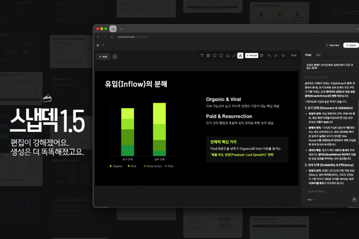 프레젠테이션의 '마지막 20%'를 줄이다…스냅덱 1.5 공개 프레젠테이션 작업에서 가장 많은 시간이 소요되는 구간은 초안 이후다. 문장을 다듬고, 톤을 맞추고, 여백과 정렬을 반복 조정하는 과정에서 전체 작업 시간이 길어진다는 점에 주식회사 에스크잇모어가 주목했다. 2026.02.11 17:19