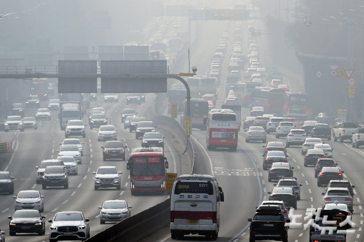 설 귀성길 정체 시작…서울→부산 6시간50분 설 연휴 첫날인 14일 오전 짙은 안개에 미세먼지까지 겹친 가운데 전국 주요 고속도로 귀성 방향 곳곳에서 정체를 빚고 있다. 2026.02.14 10:01