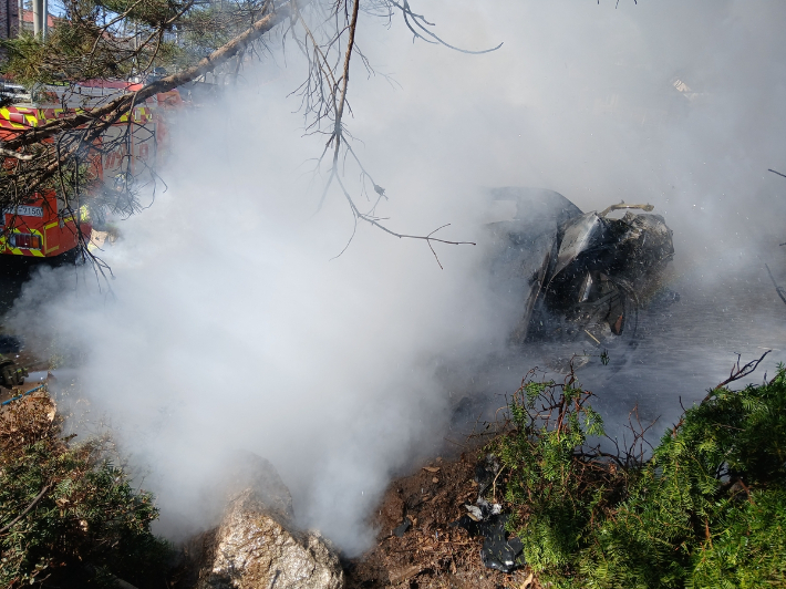 '쾅' 나무 충돌한 전기차 택시 화재로 전소…기사는 사망 인천 강화도의 한 도로에서 전기차 택시가 나무 등을 들이받은 뒤 차량에 불이 나, 운전자가 사망하는 사고가 났다. 20일 경찰·소방 당국에 따르면 전날 오전 10시 반쯤 인천시 강화군 강화읍 남산리 이면도로에서 전기차인 EV6 택시가 도로변 조경수와 조경석을 연달아 들이받았다. 2026.02.20 08:40