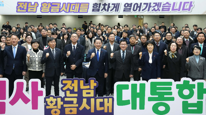 김영록 지사, "AI·에너지 수도 광주·전남 대부흥 이루겠다" 김영록 전라남도지사는 5일 "병오년 새해를 '전라남도 과학기술 진흥' 원년으로 선포하고, 모두가 함께 잘사는 '포용성장'과 '기본사회'를 선도하며, 특히 'AI·에너지 수도 광주·전남 대부흥'의 길을 걷겠다"고 강조했다. 2026.01.05 11:25