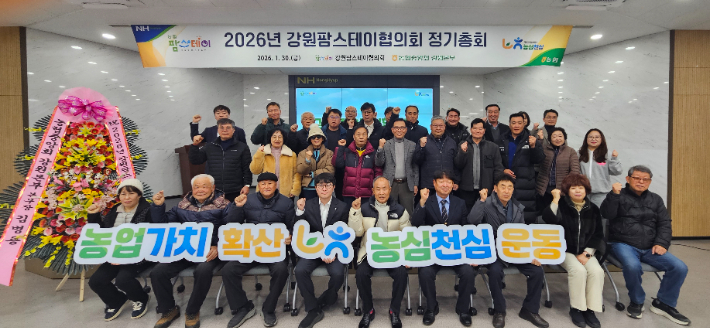 신임 강원팜스테이협의회장에 김희철 대표 선출 신임 강원팜스테이협의회장에 김희철 횡성 사재산마을 대표가 선출됐다. 농협중앙회 강원본부와 강원팜스테이협의회는 30일 본부 대회의실에서 2026년 정기총회를 열고 제7대 협의회 임원진을 선출했다. 2026.01.30 17:47