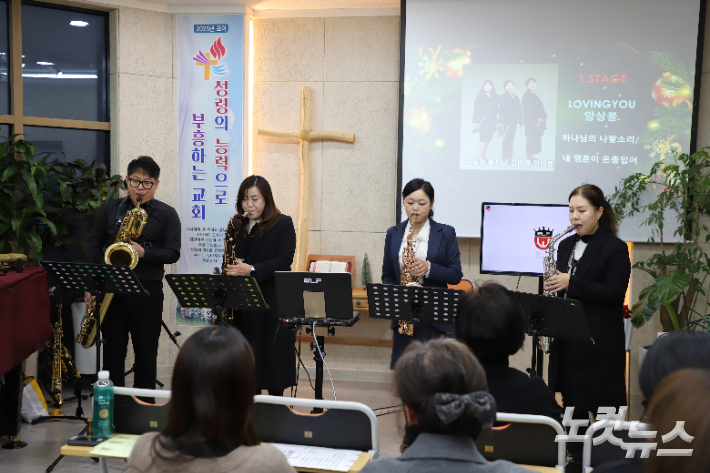 포항 열방교회, 이웃 초청 '러빙유 송년콘서트' 열어 '러빙유 송년콘서트'가 지난 28일 오후 5시 포항열방교회(설정분 담임목사)에서 엘프(이기창 이사)와 포항CBS(이진백 대표) 후원으로 개최됐다. 이날 콘서트에는 국내 최고의 섹소포니스트 문윤정, 이창극, 김미영, 황지나와 전주영 찬양선교사가 출연해 풍성한 무대를 선보였다. 2025.12.31 11:09