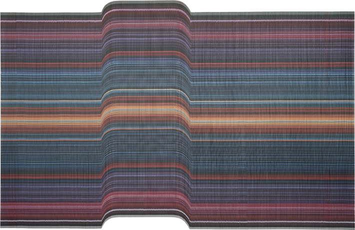 물감 대신 '사진'을 쌓아 올리다, 전병삼 개인전 '사라짐의 미학' 주황색과 청록색, 파란색, 회색 등 수십여개의 색상이 굴곡을 이뤄 마치 파도와 같다. 위아래가 산처럼 솟아 마치 산수화 풍경 같은 작품도 있다. 2025.12.02 06:00
