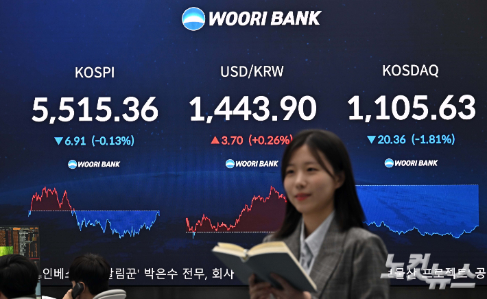 설 앞두고 널뛴 코스피 5500선 안착…'18만전자' 달성 설 연휴 휴장을 앞둔 코스피가 방향성을 탐색하며 오르내린 끝에 5500선에 안착했다. 13일 코스피는 전 거래일보다 0.28% 내린 5507.01로 장을 마쳤다. 2026.02.13 15:49