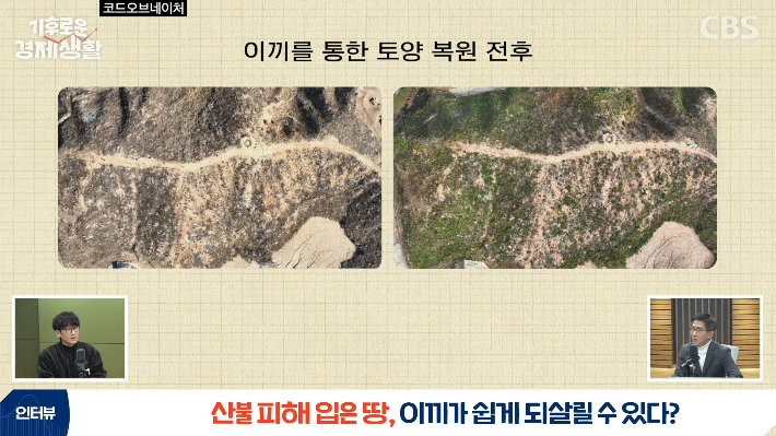 농대생의 지식으로 만든 기후테크, '이끼'로 세계 최초를 열다[기후로운 경제생활] ◆ 홍종호> 산불이 휩쓸고 간 산, 간척 후 척박해진 땅. 우리 발밑에 황폐해진 토지를 이끼로 되살리겠다는 기후테크 스타트업이 있습니다. 이른바 토양 복원. 해외에서 더 주목하는 분야인데요. 오늘은 토양 복원을 전문으로 하는 기후테크 스타트업 코드오브네이처의 박재홍 대표와 관련 이야기 나눠보겠습니다. 안녕하세요. ◇ 박재홍> 안녕하십니까? 2026.01.04 05:00