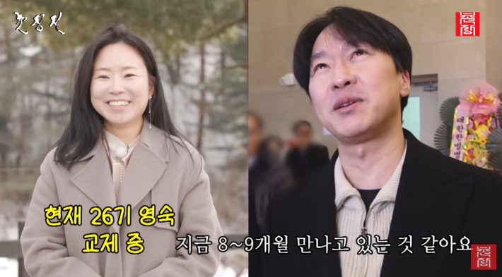 '나는 솔로' 26기 영수-영숙 '현커' 인정…"8, 9개월째 만남" 인기 짝 찾기 프로그램 '나는 솔로'에 26기로 함께 출연했던 영수(이하 가명)와 영숙이 사귀는 사이라고 알렸다. 영수는 5일 유튜브 채널 '촌장엔터테인먼트TV'에 올라온 26기 현숙과 영식 결혼식 현장 영상에 하객으로 출연해 두 사람의 결혼을 축하했다. 2026.01.06 14:45