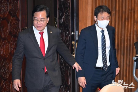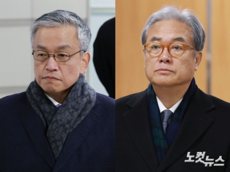'헌법재판관 미임명' 관련 첫 공판 출석하는 최상목·정진석 헌법재판관 미임명과 윤석열 전 대통령 측근인 이완규 후보자를 기습 지명하는데 관여한 혐의 등을 받는 최상목 전 경제부총리와 정진석 전 대통령실 비서실장이 10일 오후 서울 서초구 서울중앙지법에서 열린 1심 첫 공판에 출석하고 있다. 2026.02.10 14:28