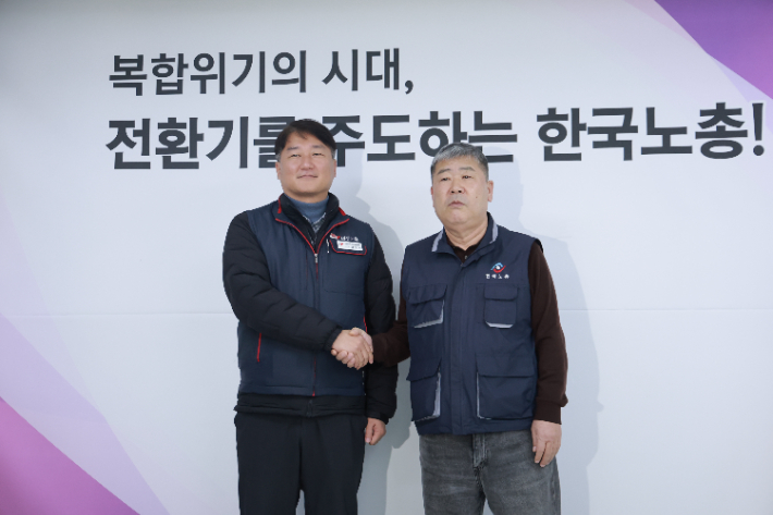 양대 노총 위원장 만나 "정부가 약속 번번이 어겨" 공동투쟁 약속 양대 노총 위원장이 10일 만나 "정부가 약속을 번번이 어기고 있다"며 공동투쟁을 약속했다. 김동명 한국노동조합총연맹(한국노총) 위원장과 양경수 전국민주노동조합총연맹(민주노총) 위원장은 이날 오전 서울 여의도 한국노총 사무실에서 간담회를 갖고 이같이 밝혔다. 2026.02.10 10:52
