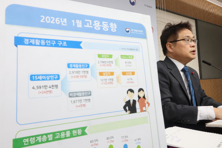 1월 실업률 4.1%…청년 취업자 17만명 줄었다 새해 첫 달 실업자 수가 121만 명을 돌파하고 실업률이 4.1%를 기록하는 등 고용 시장에 한파가 여전한 것으로 나타났다. 취업자 증가 폭이 10만 명대 초반으로 둔화된 가운데, 특히 청년층 취업자가 17만 명 넘게 급감하며 고용 시장의 활력이 급격히 저하되는 양상이다. 2026.02.11 08:25