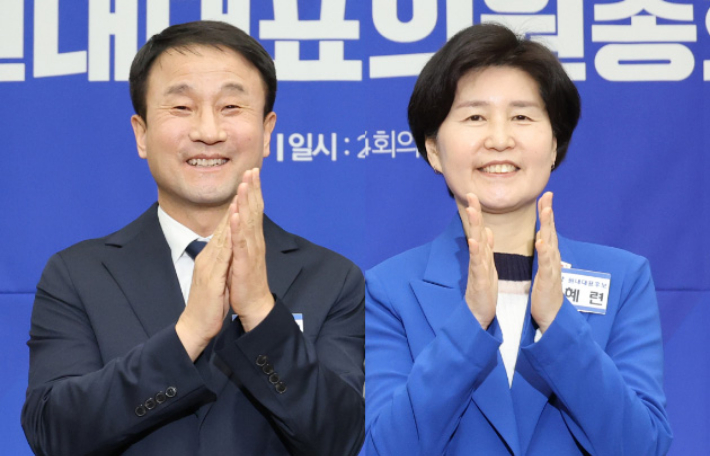 민주 새 최고위원에 '친청' 이성윤·문정복…'친명' 강득구 더불어민주당 신임 최고위원에 강득구·이성윤·문정복 의원이 당선됐다. 민주당은 11일 신임 최고위원 선출을 위한 보궐선거를 진행했다. 오는 6월 지방선거 출마를 위해 사퇴한 최고위원 공석 3자리를 채우는 선거다. 권리당원 투표 50%, 중앙위원 50% 투표를 합산한 결과로 순위를 매겼다. 2026.01.11 17:49
