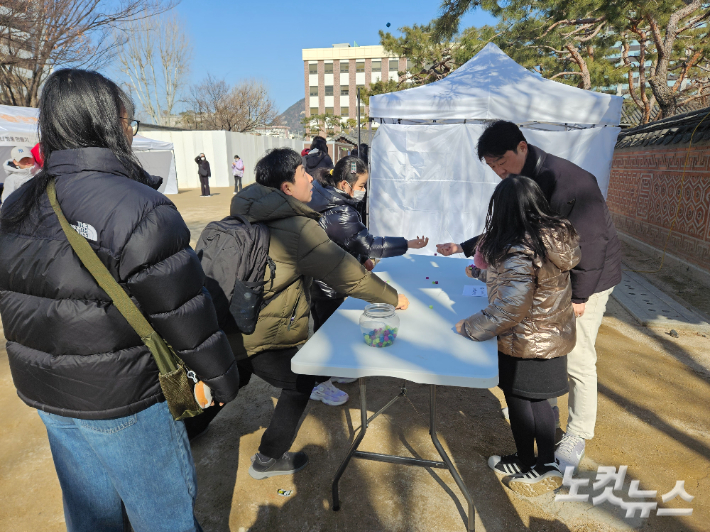 [르포]제기차기 즐기며 '웃음꽃'…까치설 나들이 나선 가족들 "자, 침착하게. 제기가 내려오면 발을 툭 툭, 그렇지! 잘했어." 제기차기가 처음인 초등학생 자녀가 아빠의 조언에 따라 발에 제기를 맞추는 데 성공하자 주변 가족들이 일제히 박수를 치며 기뻐했다. 2026.02.16 15:39