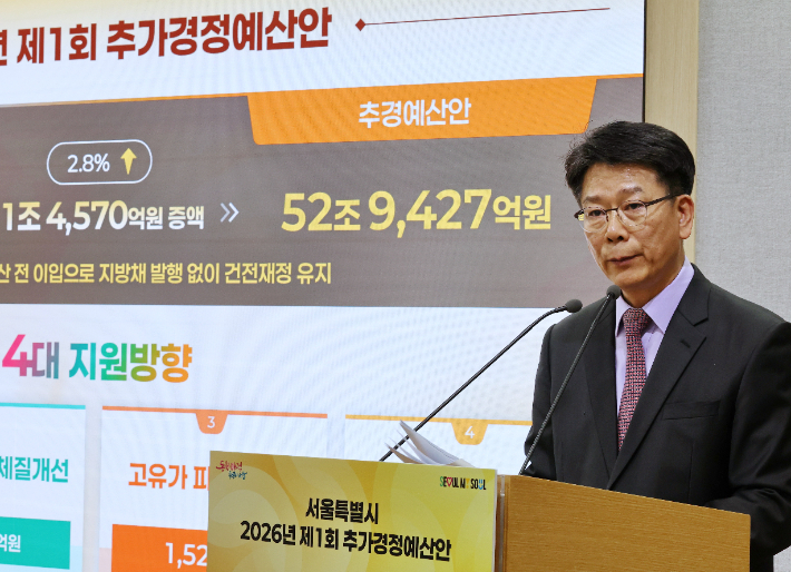 서울시, 1조 4570억 추경 편성…중동발 민생위기 대응 중동전쟁에 따른 민생위기에 대응하기 위해 서울시가 1조 4570억 원 규모의 추가경정예산안을 편성했다. 서울시는 기정 예산 51조 4857억 원 대비 2.8% 규모의 '2026년 제1회 추가경정예산안'을 편성해 15일 서울시의회에 제출한다고 14일 발표했다. 2026.04.14 11:54