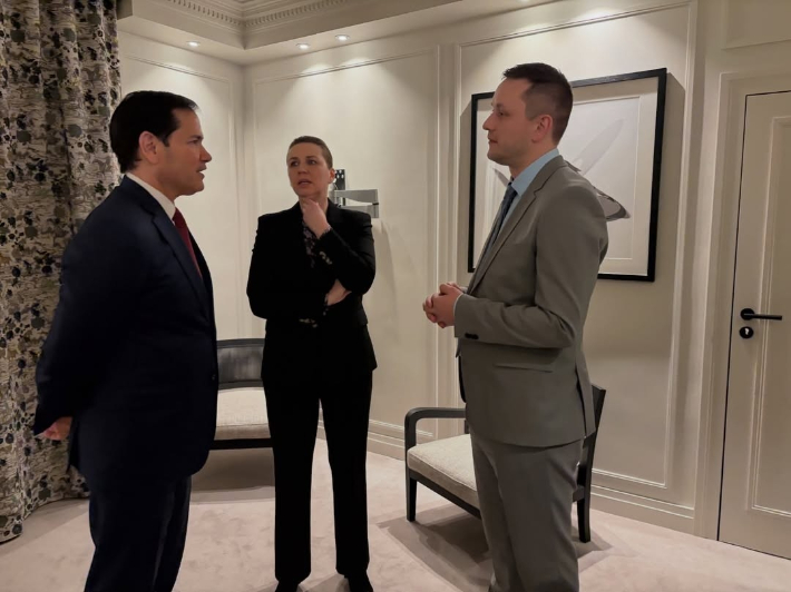 미국과 덴마크, 뮌헨서 그린란드 문제 논의 마코 루비오 미국 국무장관과 메테 프레데릭센 덴마크 총리 그리고 옌스 프레데리크 닐센 그린란드 총리가 13일(현지 날짜) 독일 뮌헨에서 만나 그린란드 문제를 논의했다고 로이터통신이 보도했다. 2026.02.14 05:22