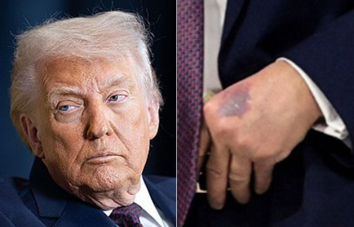 또 다시 포착된 손등의 '멍'…트럼프가 내놓은 설명은? 다보스 포럼에 참석한 도널드 트럼프 미국 대통령의 손등에서 또다시 멍자국이 발견돼 논란이 일고 있다. AFP 통신, CNN 등 외신은 22일(현지시간) 스위스 다보스에서 열린 세계경제포럼에서 찍힌 사진 속 트럼프 대통령의 왼손 손등에 짙은 멍이 든 모습이 포착됐다고 보도했다. 2026.01.23 17:12