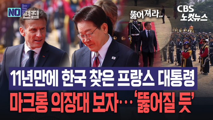 마크롱도 '케데헌' 봤나…사자보이즈 닮은 의장대에 뚫어져라 응시