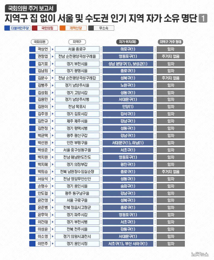 지역구 집 한 채 뿐인 '착한' 국회의원 명단