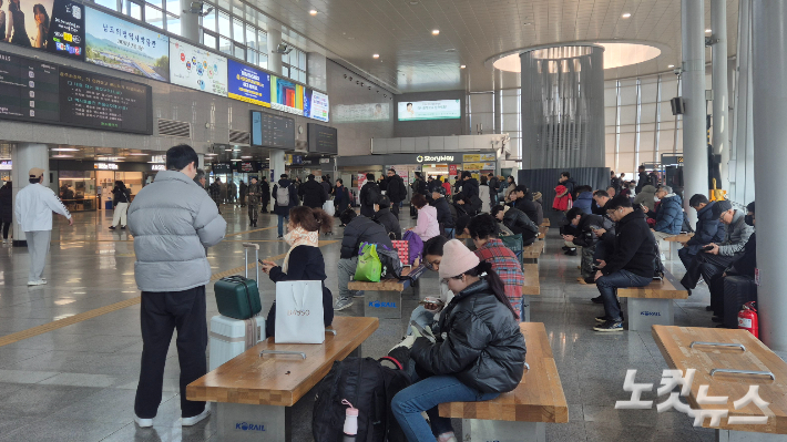 고향으로, 자녀 곁으로…귀성·역귀성 행렬 뒤섞여 역·터미널 '북적' 설 연휴를 하루 앞둔 광주송정역과 종합버스터미널은 고향을 찾은 귀성객과 자녀를 만나러 가는 역귀성 행렬이 뒤섞이며 북적였다. 13일 오전에 찾은 광주송정역에는열차가 도착하자 마중 나온 가족들의 시선이 일제히 문으로 쏠렸다.