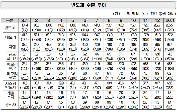 1월 ICT 수출 290억달러 역대 최대…"반도체 102% 급증" 올해 1월 정보통신산업(ICT) 수출이 290억 5천만 달러를 기록하며 역대 1월 기준 최고 실적을 달성한 것으로 나타났다. 반도체 수출이 두 배 이상 급증하면서 전체 실적을 끌어올렸다.