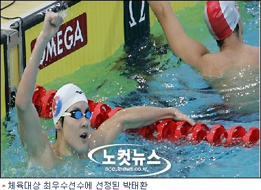 {IMG:3}아시아신기록 등 올들어 기록 경신을 계속 해 온 수영의 박태환(16.경기고)과 세계펜싱선수권대회에서 금메달을 딴 펜싱 여자플뢰레 대표팀이 체육기자연맹에 선정한 2005년 자황컵 체육대상 남녀 최우수선수에 선정됐다.