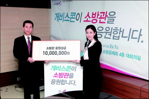 개비스콘 더블액션이 ''소방관응원캠페인''기부금을 7일 소방공제회에 전달했다.