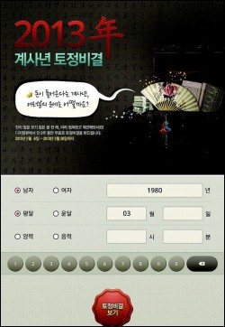 2013년 토정비결은 다음 운세(fortune.daum.net) 사이트에서 5000원에 서비스 중인 유료 콘텐츠다.