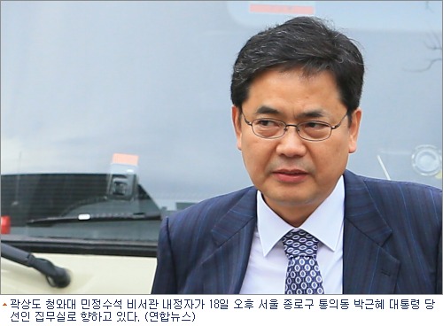 곽 내정자는 박근혜 대통령 당선인의 싱크탱크 역할을 한 국가미래연구원 법·정치분야 발기인으로 인수위 정무분과 전문위원으로도 활동하는 등 박 당선인과의 인연이 깊은 것으로 알려졌다.