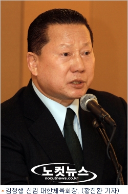 김정행 후보는 22일 서울 올림픽파크텔에서 열린 대한체육회장 선거에서 전체 대의원 54명 가운데 28명의 지지를 얻어 새 회장에 뽑혔다.