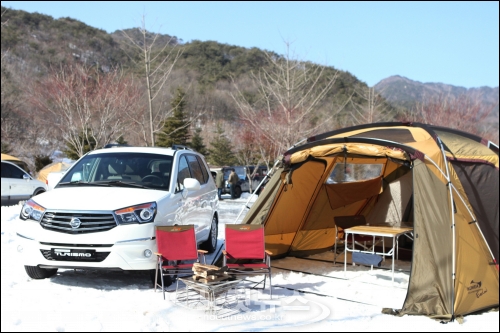''''2013 스노우 드라이빙 스쿨&오토 캠핑''''은 코란도 투리스모의 출시를 기념해 16일과 17일 이틀 동안 춘천 모터파크와 프라임 오토캠핑장에서 열렸으며, 60개 팀 총 240여 명이 참여해 주행 교육을 수강하고 한겨울 밤 가족과의 캠핑 등의 경험을 함께 했다.