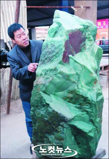 지난 23일 중국 신미시 쭈췐스 옥광산에서 높이 1.56미터, 무게 1.8톤의 옥(