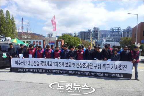 통합진보당 소속 천중근 전라남도의원을 비롯한 노동단체들로 구성된 ''대림현장 대형참사 대책위원회''는 18일 오후 대림산업 앞에서 열린 1차 조사 보고와 공동진상조사당 구성 촉구 기자회견에서 이같은 사실을 밝혔다.