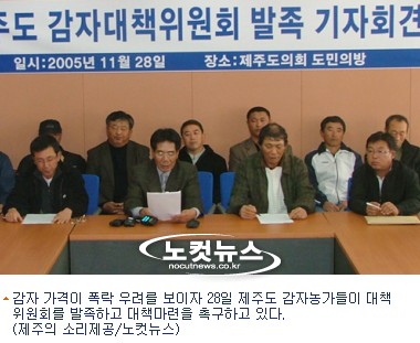 제주도 감자출하대책위원회 허창욱 집행위원장은 28일 기자회견을 갖고 "가을감자 수확기에 접어들면서 예상했던 가격하락이 현실로 나타나고 있다"고 말하고 "특히 감귤원을 폐원하고 대체작목으로 감자농사를 시작한 농가들은 제주도의 농업정책에 불만의 목소리를 내고 있다"고 설명했다.