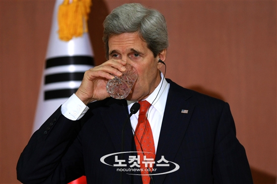 물 마시는 존 케리 미 국무부 장관