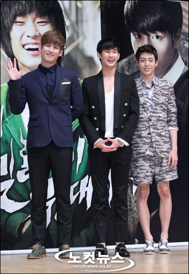 영화 ''은밀하게 위대하게'' 쇼케이스가 30일 오후 서울 자양동 건국대학교 새천년관에서 열린 가운데 (왼쪽부터) 배우 박기웅, 김수현, 이현우가 포토타임을 갖고 있다.