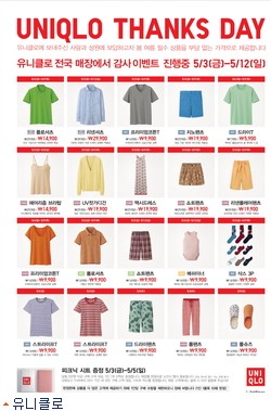 한편, 유니클로는 ''THANKS DAY'' 기간에 맞춰 처음으로 대형마트 홈플러스에 입점하고, 강서점, 해운대점, 신세계백화점 마산점 3곳에서 300평 규모의 매장을 오픈한다. [BestNocut_R]