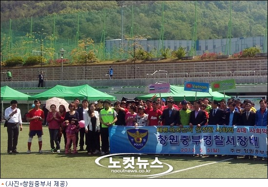 경남 창원중부경찰서(경무관 서장 김임곤)는 5월 가정의 달을 맞아 외국인명예경찰대와 외국인 근로자, 다문화 가족 등을 초청, 국가별 대항 축구대회를 열었다고 5일 밝혔다.