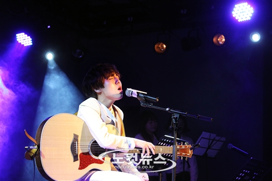 슈퍼스타K 출신 가수 유승우가 8일 오전 서울 여의도 MPUB IFC몰점에서 열린 데뷔 앨범 ''첫 번째 소풍'' 발매 기념 쇼케이스에서 자신의 타이틀곡인 ''헬로''를 공개하고 있다.