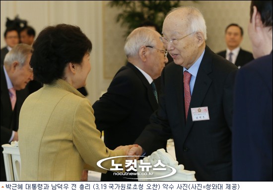박근혜 대통령이 남덕우 전 총리를 마지막으로 본 것은 지난 3월 19일 국가원로초청 오찬때였다. 당시 남 전 총리는 박 대통령에게 "민주주의 가치와 시장경제 준수를 미래세대에 잘 교육해야 한다"고 조언했다.