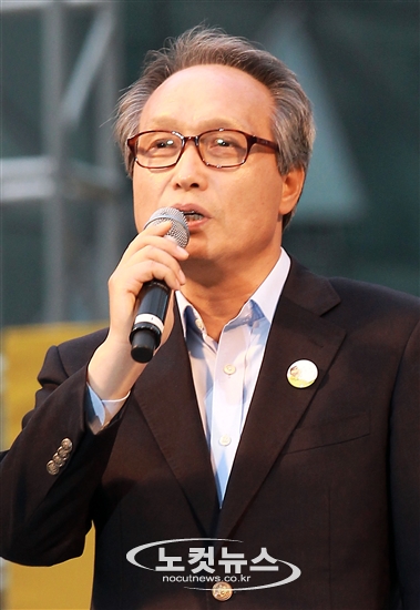 19일 오후 서울광장에서 열린 ''노무현 대통령 서거4주기 추모 문화제'' 에 참석한 이병완 노무현재단 이사장이 인사말하고 있다.