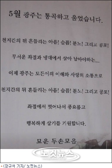 특히 5.18과 같은 거대한 사건에 대한 상처는 좀처럼 치유되기 힘들다. 2년째 이 행사를 기획해 온 묘운 승려 또한 5.18에 대한 아픔을 갖고 있다. 80년 5월 조선대학교 학생으로 5.18의 현장을 몸소 겪었던 묘운 승려는 "희생자 가족의 아픔을 근본적으로 치유하고 앞으로는 절대로 이런 일이 없도록 하기 위해, 작지만 의미있는 작업을 계속하고 있다"고 말했다.