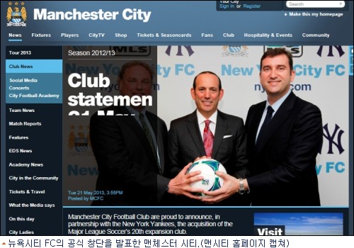 22일(한국시간) 맨시티는 공식 홈페이지는 ''''맨시티가 뉴욕 양키스와 파트너십을 체결하고 미국 메이저리그 사커(MLS) 20번째 팀을 창단하게 됐다''''고 밝혔다. 발표에 따르면 새로 창단되는 팀의 이름은 뉴욕시티 FC 이며, 2015년부터 리그에 합류할 예정이다.