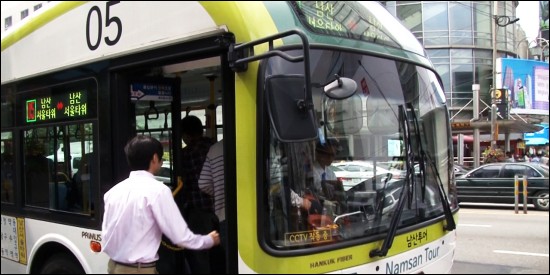 옵션 1. 신기한 땅콩 모양 전기버스로 남산까지남산은 개인이 승용차를 타고 전망대까지 올라갈 수 없다. 외국인을 태운 택시와 장애인 차량만이 자동차로 남산을 통과할 수 있다. 그러면 연인들은 차를 이용해서 남산을 오를 수 없을까? 방법이 있다. 남산 주위를 빙글빙글 도는 순환버스를 타면 남산으로 손쉽게 갈 수 있다.
