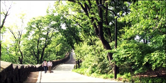 세 번째로 국립극장에서 시작해서 북측 순환로를 통해 남산 전망대를 오르는 방법도 있다. 순환로 산책 길은 버스가 다니는 길과 같아서 계단이 없는 오르막 경사로이다. 반면 성곽순례길은 계단길과 오솔길이 함께 있는 트래킹 코스이니 취향에 맞게 선택하면 되겠다.