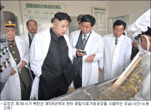 북한 김정은 제1비서가 북한군 제534군부대 관하 종합식료가공공장을 현지지도했다고 북한매체들이 25일 전했다.