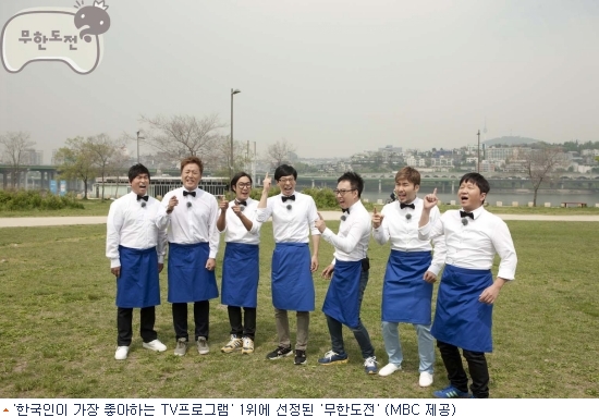 리서치 기관 한국갤럽이 지난 20일부터 23일까지 나흘간 전국 만 19세 이상 남녀 1217명을 대상으로 한 조사에 따르면 ''무한도전''이 12.8%로 한국인이 좋아하는 TV프로그램 1위를 차지했다.